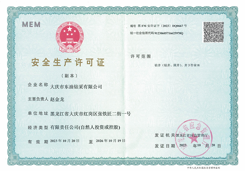 大慶東油鉆井企業(yè)資質(zhì)證書(shū)