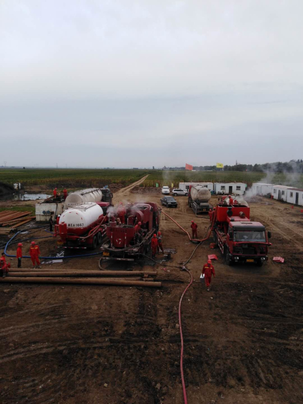 2018年8月23日,大慶市東油鉆采有限公司固井隊(duì)對(duì)這口井進(jìn)行完井固井施工。注灰低密度55方,原漿22.5方,替泥漿32.2方,水泥漿返出地面,施工**順利,一切正常,很圓滿。